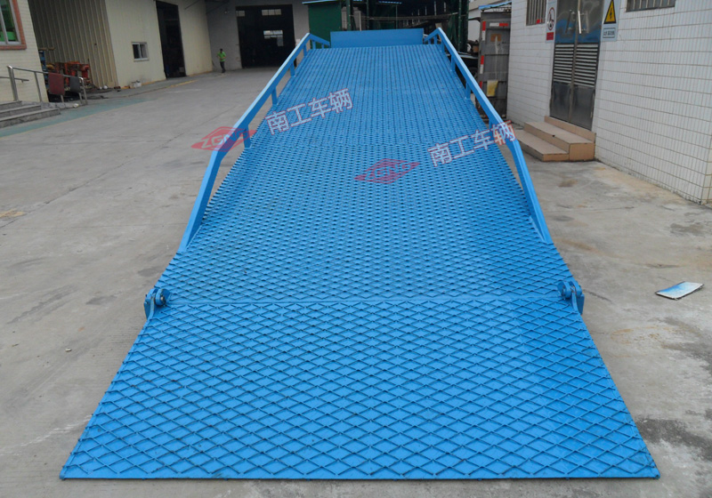 產(chǎn)品介紹:移動(dòng)登車橋是與叉車配合使用的貨物裝卸專用輔助設(shè)備,適用于裝卸作業(yè)不固定的場所,如工廠、大型倉庫等。叉車可通過其從地面直接駛?cè)胴涇噧?nèi)部進(jìn)行作業(yè)。該產(chǎn)品具有堅(jiān)固的鋼質(zhì)焊接支撐結(jié)構(gòu),表面鋪設(shè)防滑網(wǎng)或柵格網(wǎng),即使在雨雪天氣下仍可正常使用。采用手動(dòng)方式調(diào)節(jié)高度,單人操作即可,使裝卸作業(yè)變得更省時(shí)、省力、省心。十年設(shè)計(jì)壽命,經(jīng)久耐用。Movable ramp is used together with forklift for goods handling in factory or big warehouse, it allows forklift to drive on load bed of vehicle directly to load and unload. All steels are well welded in fixture, with anti-slip floor to ensure all-weather adaptability. It has hand-operated height adjustment landing gear; Single person for operating is enough. 10 years of lifespan.