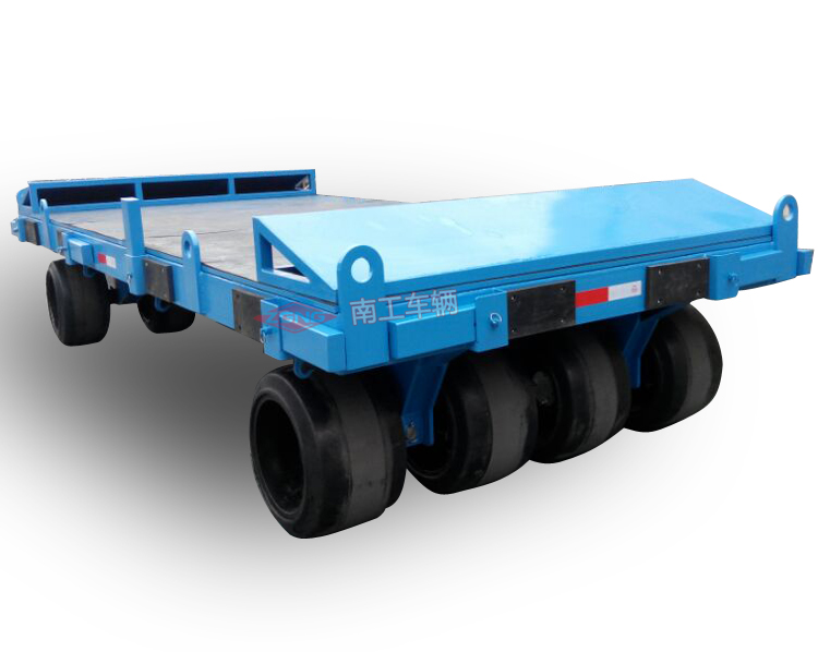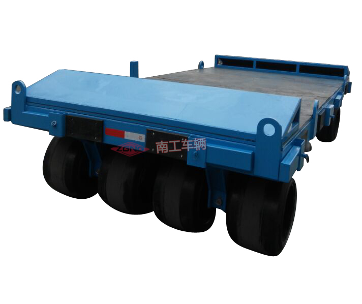35噸模具過跨重型平板拖車南工車輛非標訂制,本平板拖車承重35噸,平臺表面鋪20MM厚橡膠面板,適用于車間模具過跨運輸,車間貨物周轉運輸。應用場合:工廠模具過跨運輸、車間貨物周轉。